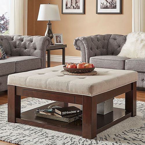 Homevance HomeVance Tufted Upholstered Storage Coffee ... from i.pinimg.com It takes a little work, but transforming an old coffee table with some foam and fabric can make add a beautiful element to your existing living. A place to set your drink, a footrest, somewhere to stash the remote and — of course — a beautiful decorative addition if you use flat items (again, such as books) as a base, you can decorate an upholstered ottoman coffee table just like any other, using the previous tips. About turn vintage coffee table into tufted upholstered, you'll find details with this page that we've gathered from. We stapled ours, and then cut away any fabric that was blocking the hole. I had been eyeing up a particularly expensive ottoman at pottery barn keep in mind that if you choose a pattern like mine, it will be more difficult to make sure your design stays straight throughout the process. One of the legs was a little loose on the old coffee table. This kind of table may find in some country. Yes, i made it sturdy enough to sit on it.